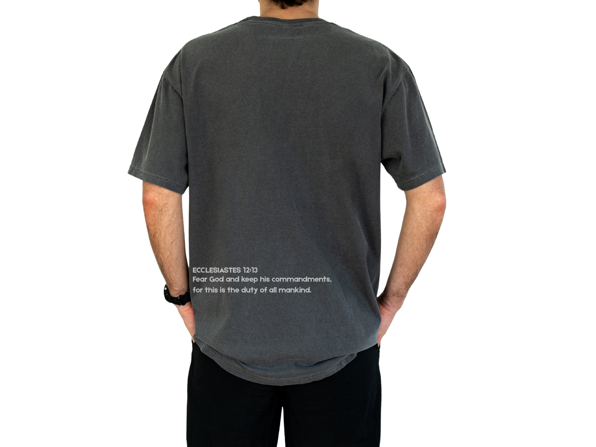 A simple and modern bible verse t-shirt featuring Ecclesiastes 12:13. Perfect for everyday wear and a great reminder of faith.